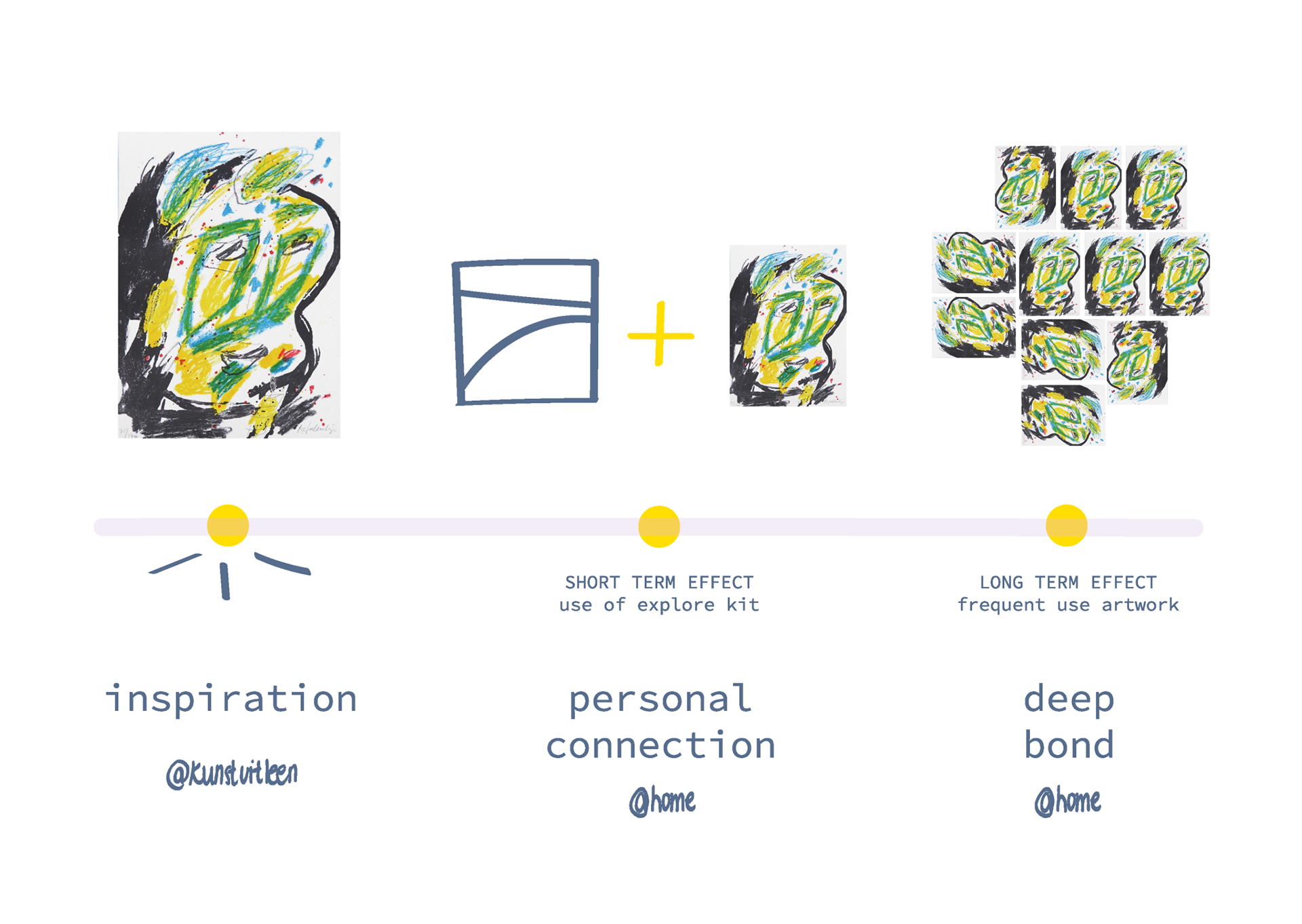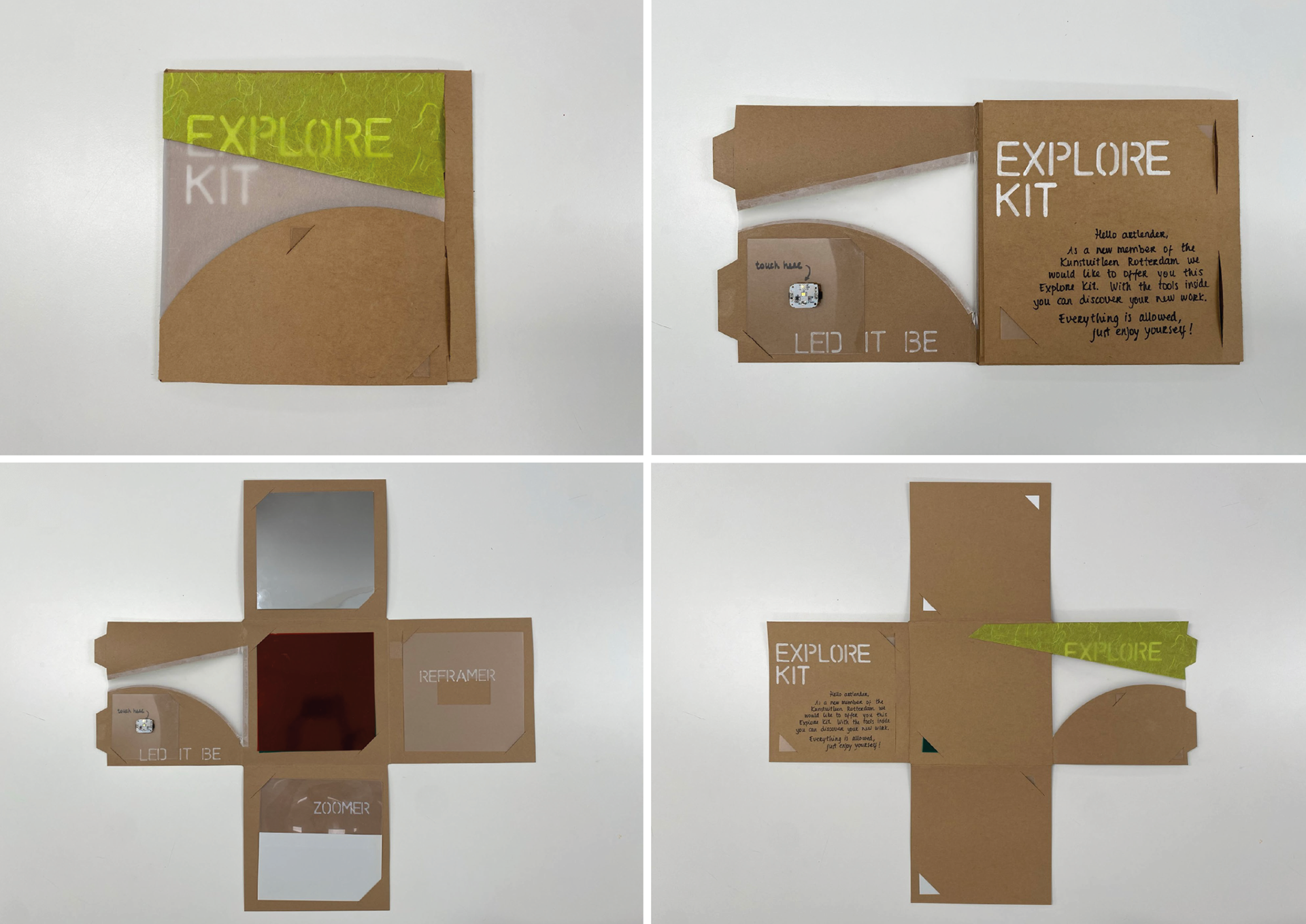 I came up with the Explore Kit, a toolkit designed to encourage new members of the Art Library Rotterdam to explore their personal connection with their artwork at home - in a supportive, liberating, intimate, energizing and surprising way. By exploring the effects of my tools iteratively, I designed the set of tools in such a way that it enabled art lenders to explore the artwork from different perspectives in the way they wanted.